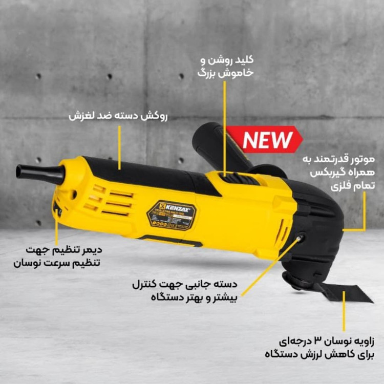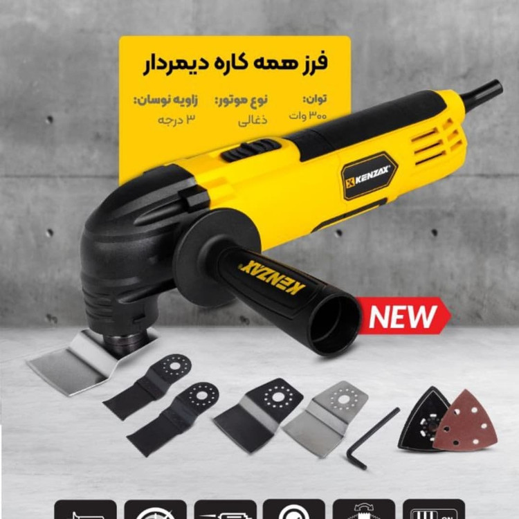 از جدیدترین ابزارآلات پرکاربرد و با کیفیت کمپانی KENZAX فرز چند کاره مجهز به موتور 300 وات ضد نفوذ گرد و غبار مناسب برش، ساب و لایه برداری چوب، پلاستیک، فلز و... طراحی ارگونومیک و سبک با دسته کمکی گردان و ضد لرزش قابلیت تنظیم سرعت با دیمر 6 پله ای تا 23000 دور بر دقیقه زاویه نوسان 3 درجه ای / بدنه مستحکم و دارای عایق دوبل سوئیچ پاور کشویی بزرگ با کابل برق 2 متری برای کاربری آسان به همراه سه عدد کاغذ سنباده با درجه زبری 120 - 80 - 60 عرضه با گارانتی یکساله و خدمات پس از فروش طولانی اصلی